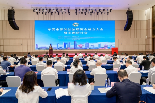 2024年5月16日,东莞市涉外法治研究会成立大会暨主题研讨会在东莞迎宾馆召开。